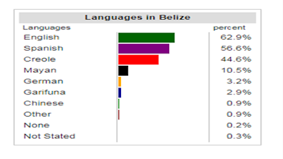 Belizeans people consist on being bilingual speakers so, as Mestizos that speak rather spanish or english and creoles speaking a pidgin english and/or African, thera are other comunities like the Garifunas that commonly speak an old Germanic-based language and either english or spanish. But most of belizeans will speak their native laguages and the formal ones as well.